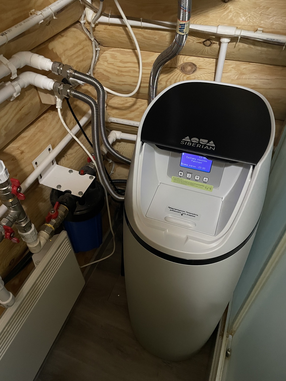 Отдельно на объекте смонтировали современную систему водоподготовки SiberianAqua IQ GreyEdition 1800. Система предназначена для снижения жёсткости воды, защиты водонагревательного оборудования и бытовой техники от накипи, а также повышения общего комфорта эксплуатации системы водоснабжения. В результате заказчик получил не только рабочую и безопасную систему отопления, но и решение по улучшению качества воды для дома.
