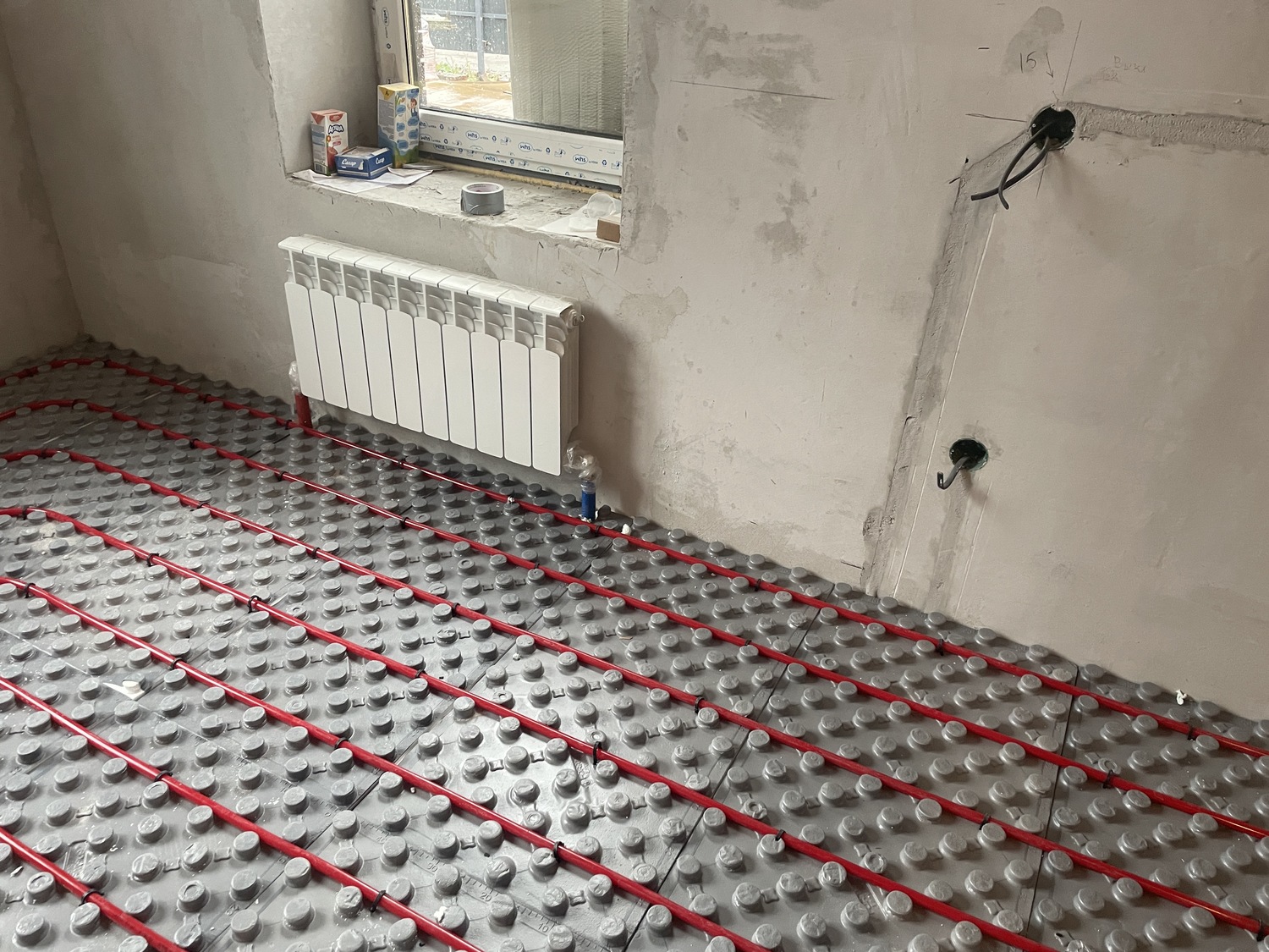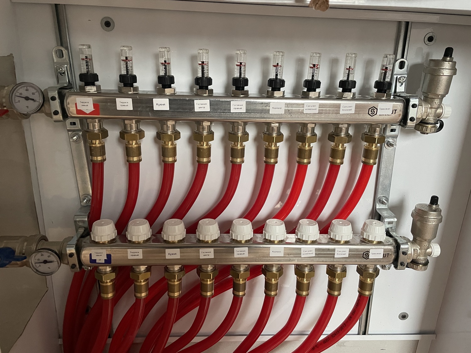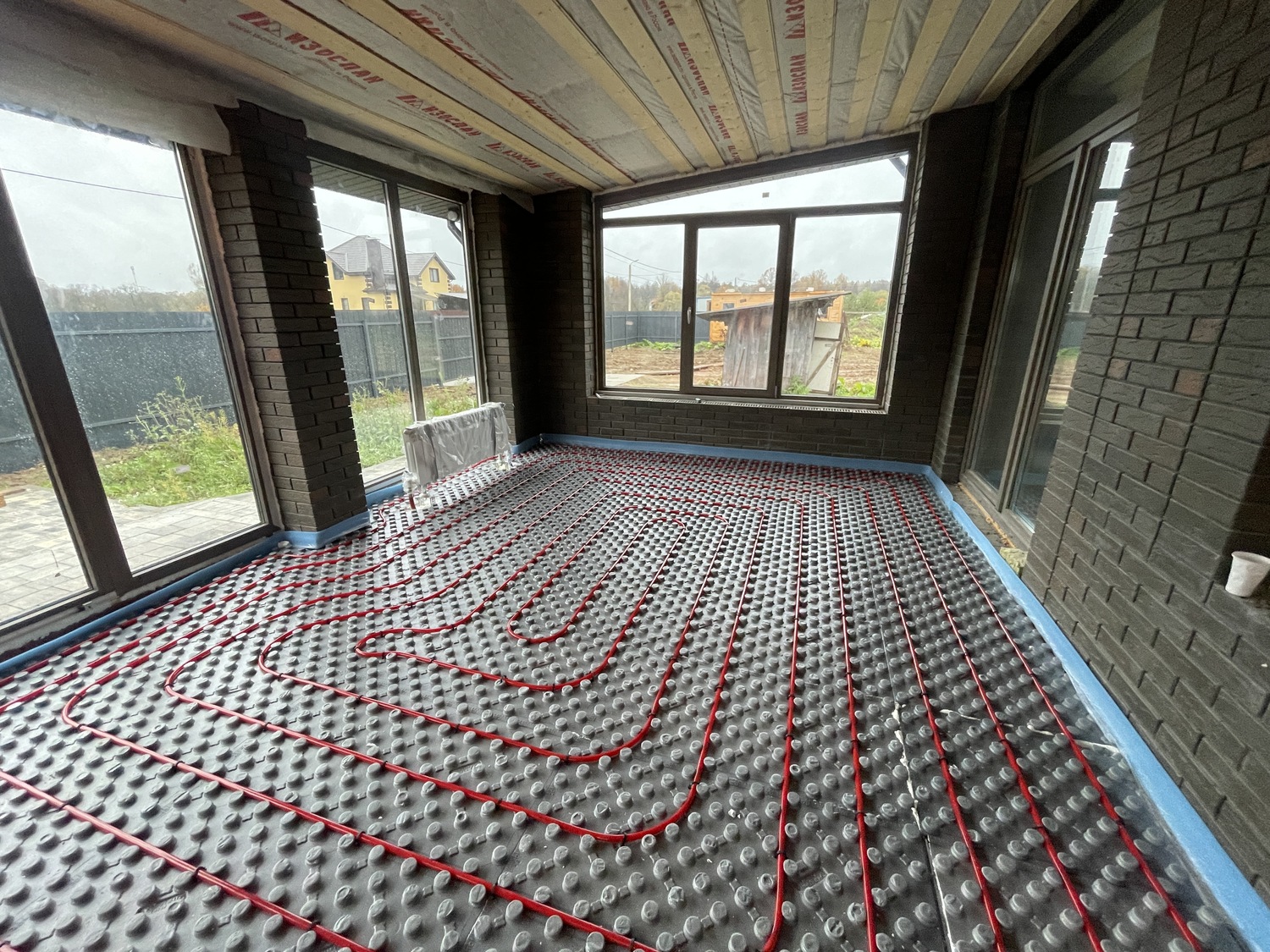 Также выполнили монтаж утепления, матов тёплого пола, демпферной ленты и автоматики с комнатными термостатами и сервоприводами для управления зонами отопления.