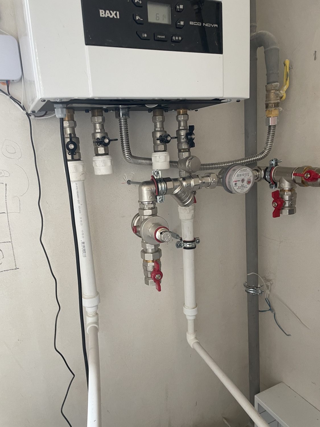 Выполнили монтаж газового котла Baxi ECO Nova 24 кВт, бойлера Stout 200 л, радиаторов, водяного тёплого пола, водоснабжения, канализации и системы EctoControl в доме в Ерюхино.