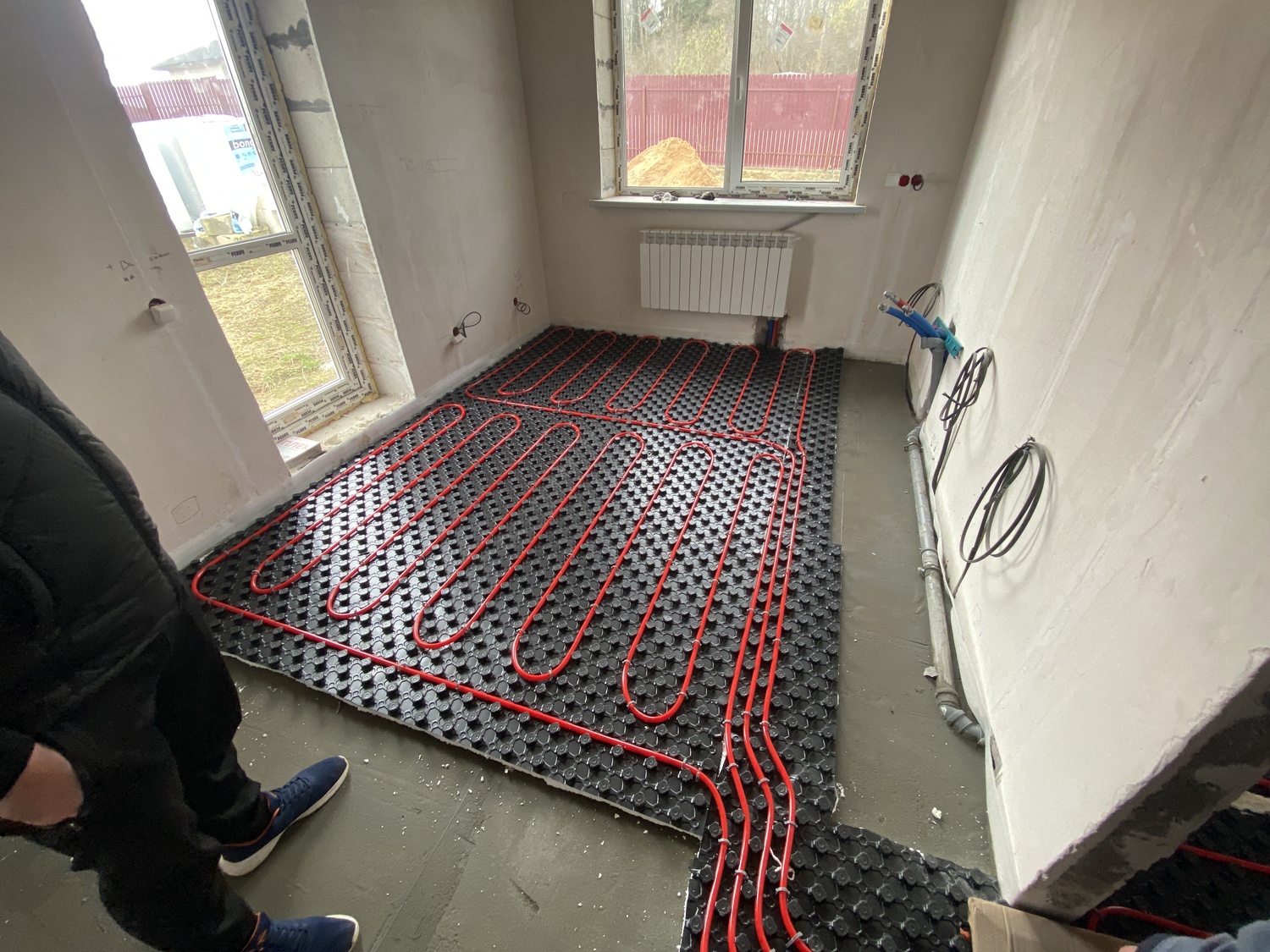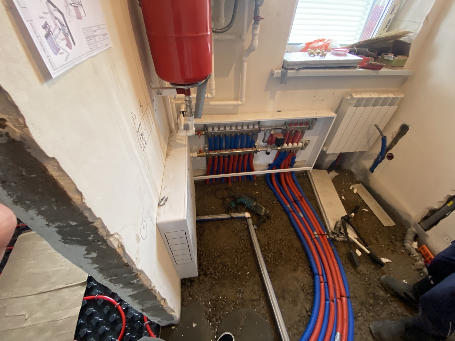 Выполнили монтаж инженерных систем в частном доме в Ерюхино с устройством котельной, отопления, тёплого пола, водоснабжения и внутренней канализации. В основе системы установлен двухконтурный газовый котёл Baxi Eco Life 24 кВт, который обеспечивает отопление дома и подготовку горячей воды.На объекте смонтировали узел водоподготовки, коллекторы отопления, тёплого пола и водоснабжения, выполнили монтаж радиаторов Rifar с нижним подключением, магистралей отопления и водоснабжения из сшитого полиэтилена, а также внутренней канализации трубами Sinikon. Дополнительно выполнили устройство водяного тёплого пола с матами, закрытую разводку труб к сантехническим точкам и пусконаладочные работы с заполнением системы теплоносителем.Отдельно выполнили монтаж водоснабжения бани: установили унитаз, раковину, смеситель, душевую кабину, накопительный водонагреватель, греющий кабель, узел водоподготовки и внутреннюю канализацию. В результате заказчик получил готовую инженерную систему дома и бани с удобной эксплуатацией, продуманной разводкой и надежной работой отопления и водоснабжения.