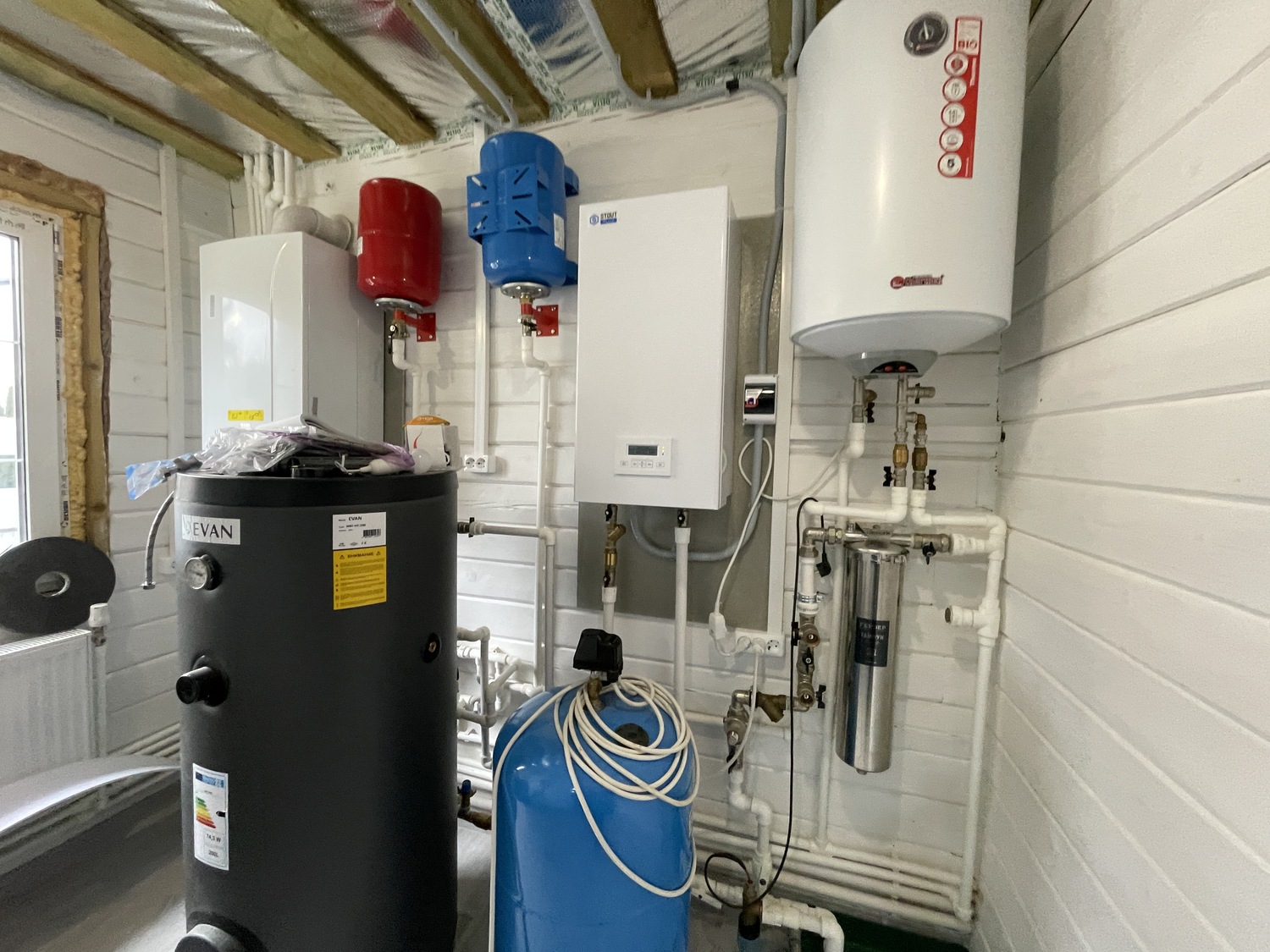 Разработали проект отопления, водоснабжения и канализации для жилого дома в п. Новофедоровское, СНТ «Зверево». Подробные чертежи, спецификация, схема топочной, дымоходы и вентканалы. По проекту заказчик самостоятельно реализовал инженерные коммуникации.